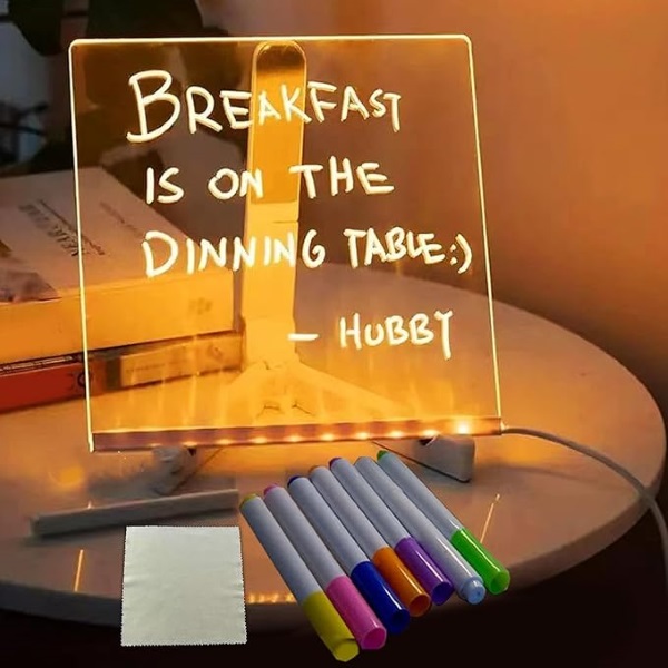 Tápete při hledání způsobu, jak zanechat rodině láskyplné vzkazy? Naše svítící tabule umožňují nejen zanechat láskyplné vzkazy pro vaše děti nebo blízké, ale nabízejí také možnost psát vzkazy a vytvářet kresby. Ať už jde o připomínku, abyste měli skvělý den, nebo o roztomilou čmáranici, která jim zlepší náladu, tyto tabule poskytují kreativní a interaktivní způsob komunikace a vyjádření náklonnosti. Nechte svou lásku zazářit s našimi osvětlenými nástěnkami!