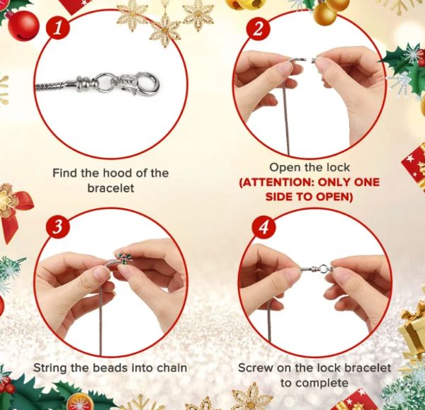• Vánoční adventní kalendář obsahující 22 přívěsků a 2 náramky k vytvoření dvou okouzlujících náramků.